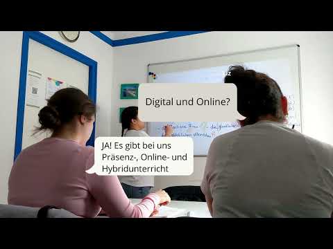 Es wurde also Präsenz- und Onlineunterricht gemischt, es könnten also z.B. zwei Schüler klassisch im Klassenraum sitzen und drei andere online zugeschaltet sein. Durch Hybridunterricht kommt es zu weniger Unterrichtsausfällen und es entsteht eine flexiblere Teilnahme am Sprachkurs. Um den hybriden Onlinezugang zum Klassenzimmer zu nutzen, erhebt unsere Schule eine einmalige Gebühr von € 50,-. Es ist jedoch zu beachten, dass der hybride Unterricht für unsere Lehrkräfte anstrengend sein kann, weshalb diese Unterrichtsform nur für kurze Zeiträume von uns empfohlen wird.